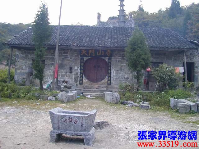 (天門山寺)天門山寺最早建于唐代,古稱云缽庵、靈泉院、嵩梁堂,明代時(shí),因擇址不當(dāng)而屢遭風(fēng)摧又常遭水荒,才將天門山寺從東部山頂遷移至此。以前這里古木參天,濃蔭蔽日。古寺門楣上刻有“天門仙山”四字,大門兩邊的對聯(lián)是:“天外有天天不夜,山上無山山獨(dú)尊”,傳為李自成部將野拂撰書。進(jìn)門為大佛殿后面有觀音堂,兩邊六間平房,最后一棟是祖師殿,規(guī)模宏大。民間概括為“三進(jìn)堂、六耳房,磚墻鐵瓦鍋如壙”。山寺原建筑十分講究,飛檐翹角,雕龍畫鳳,并塑有佛道神像菩薩等。還有大鼓一面,千斤大鐘一口,一座七級石塔和一個(gè)大化錢爐。據(jù)碑刻記載,自清乾隆至民國五年的163年間,天門山寺共修葺過七次,香火曾盛極一時(shí),湘鄂川黔邊境十多個(gè)縣的信徒絡(luò)繹不絕,都來這里進(jìn)香拜佛?,F(xiàn)天門山旅游股份有限公司正在大規(guī)模地修復(fù)天門山寺,昔日的繁華又將重現(xiàn)。