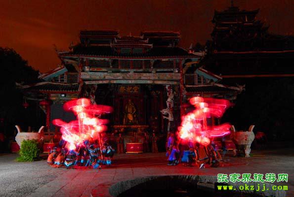 第三站:擺手場上圖騰柱的講解、土家族風(fēng)情表演及客人參與的互動(dòng)節(jié)目,讓您在歡快的擺手舞中陶醉。(其中每天上午十點(diǎn)、下午四點(diǎn)準(zhǔn)時(shí)推出土家族百人大祭祖活動(dòng);