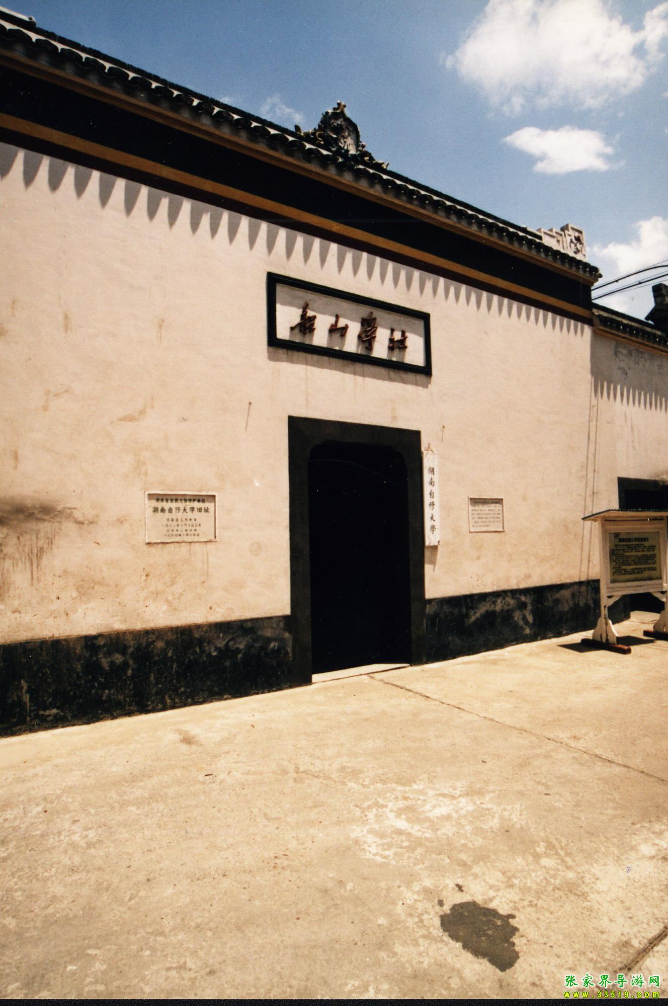 湖南自修大學(xué)舊址在中山東路263號,原為曾國藩祠的一部分。光緒初,郭嵩燾在此創(chuàng)辦思賢講舍。1912年劉人熙將其易名為船山學(xué)社。1921年8月,毛澤東、何叔衡于中共“一大”后,取得社長仇亦山,總干事王季范等同意,在此創(chuàng)辦湖南自修大學(xué),李達(dá)為首任校長。