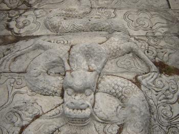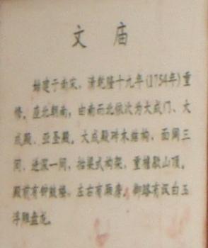 廟前面有學(xué)宮坪,亦名學(xué)坪,坪南端有大明壁。廟宇紅墻黃瓦,氣勢(shì)宏偉。正門曰奎星門,前院左右各植檜樹,常年翠綠,散發(fā)幽香??情T內(nèi)有月形泮池,池周護(hù)以石欄。泮池附近有石坊三座,正南石坊匾額鐫有“斯文在茲”四字,東西兩坊貫通街衢。通過(guò)石坊便是大成門。進(jìn)門左右是飛檐綠瓦的鐘鼓亭。大成門通向大成殿,有石鋪甬道直抵大殿臺(tái)基。臺(tái)高一米,全系石塊疊成。臺(tái)階分左右兩道,中有石雕盤龍,綴以云海波濤,栩栩如生,躍然石上。大成殿為歇山式重檐結(jié)構(gòu),周圍有16根圓石柱,內(nèi)外枋、檁、藻井、斗拱、扇梧均五彩施繪,黃瓦飛檐,蔚為壯觀。殿后有亞圣殿,與大成門、奎星門前后襯應(yīng),更顯出大成殿主體的雄偉。