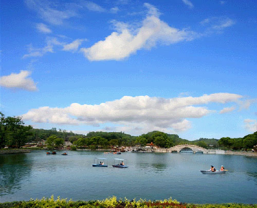君山又是一個(gè)秀麗的綠洲,島上的草木自古就很聞名?,F(xiàn)在每逢初春漲水之前,湖灘上綠草綿綿,野花斑斕,頗具草原風(fēng)味;一到夏天水漲,葦葉青青,水鳥出沒,又是一派蘆蕩景象。君山有各種各樣的樹,多達(dá)200余種,各種花卉,四時(shí)怒放,真是青碧連云,香飄全島。叢綠之中,尤以竹林、茶園最富特色。