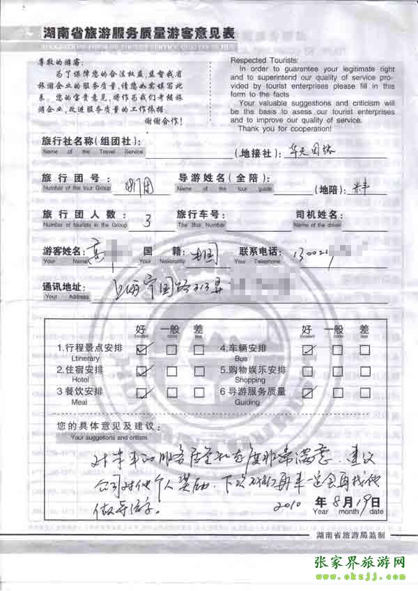 - 游客夏先生為表揚(yáng)導(dǎo)游李姣姣寫來表揚(yáng)信致我張家界... [14811]