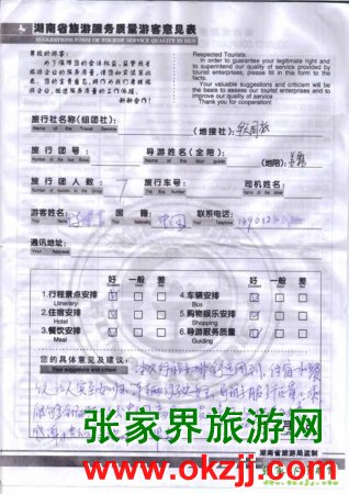 - 游客夏先生為表揚導游李姣姣寫來表揚信致我張家界... [14811]