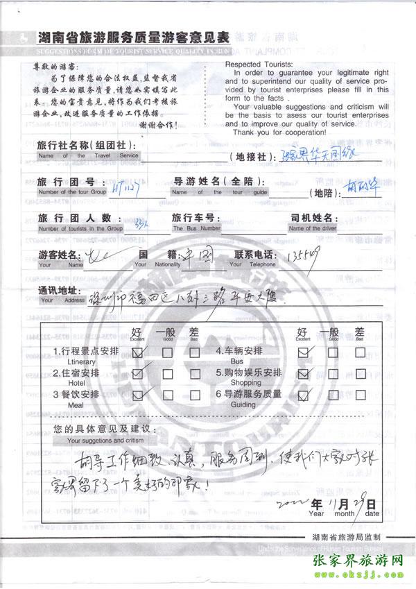 - 游客夏先生為表揚(yáng)導(dǎo)游李姣姣寫來表揚(yáng)信致我張家界... [14811]