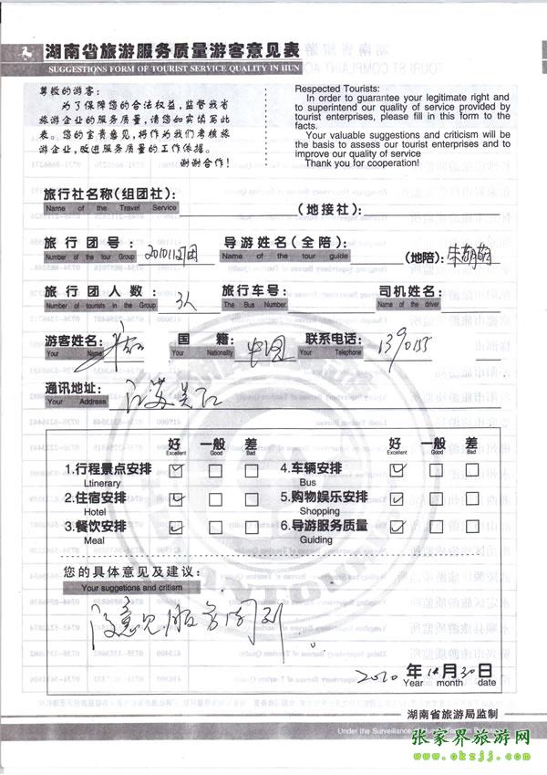 - 游客夏先生為表?yè)P(yáng)導(dǎo)游李姣姣寫(xiě)來(lái)表?yè)P(yáng)信致我張家界... [14811]
