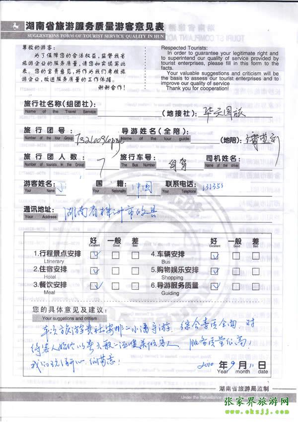 2009年湖南丁先生/女士說導游素質高,我們很開心很滿意!