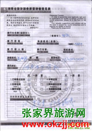 2010年3月14號吳先生一行張家界旅游質(zhì)量反饋