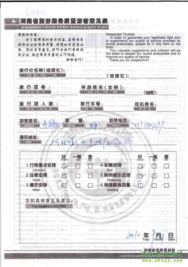 - 2011年10月26日張小姐一行18人旅游質(zhì)量反饋 [10482]