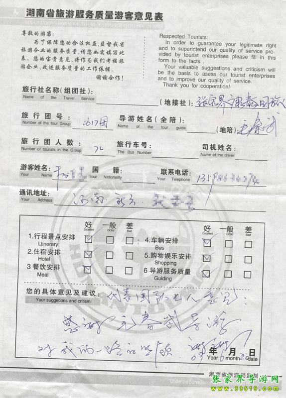 - 游客夏先生為表揚導(dǎo)游李姣姣寫來表揚信致我張家界... [14811]