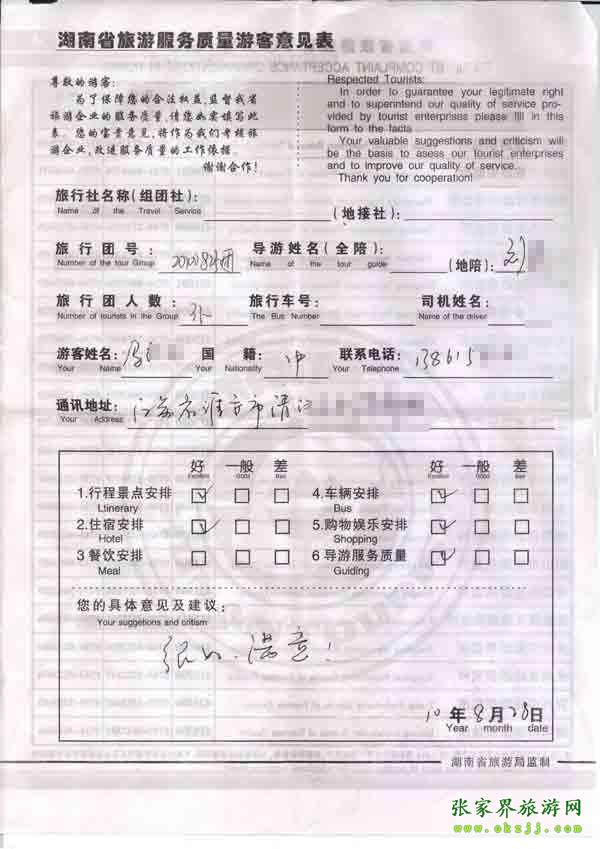 2010年8月28日江蘇馬先生一行3位 旅游質(zhì)量反饋:很好,滿(mǎn)意