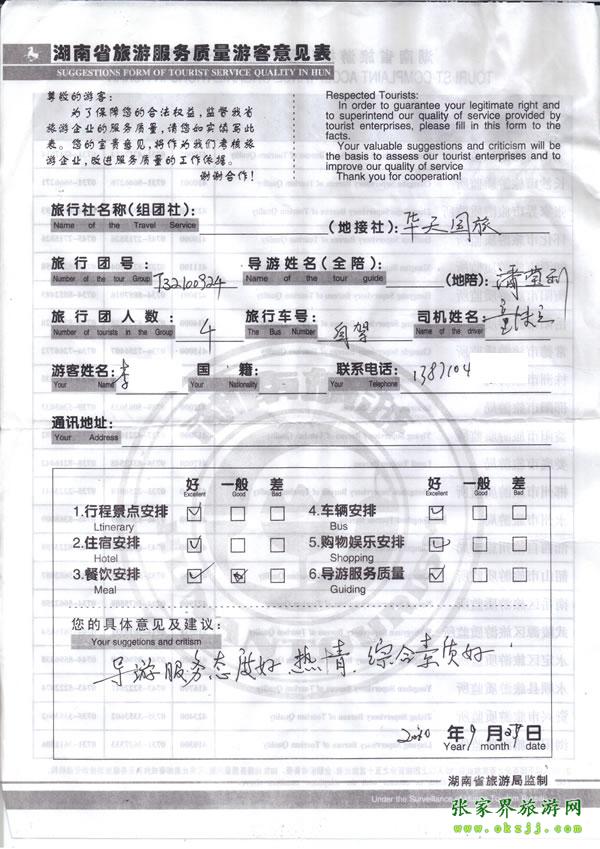 2010年9月24日 李先生一行 高度評價華天國旅導游小潘